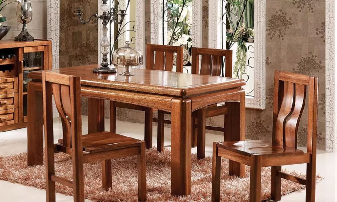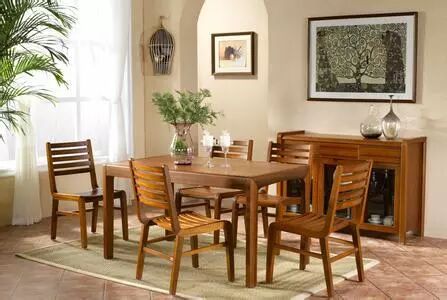 餐桌椅中含椅子和桌子,其中椅子的部件包含椅背后脚、前脚、椅子侧板、座框、座板、椅背部分。桌子的部件包含桌子脚、桌框、桌台。