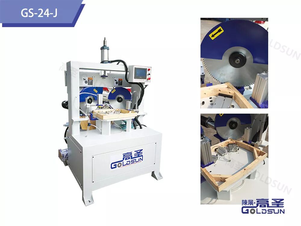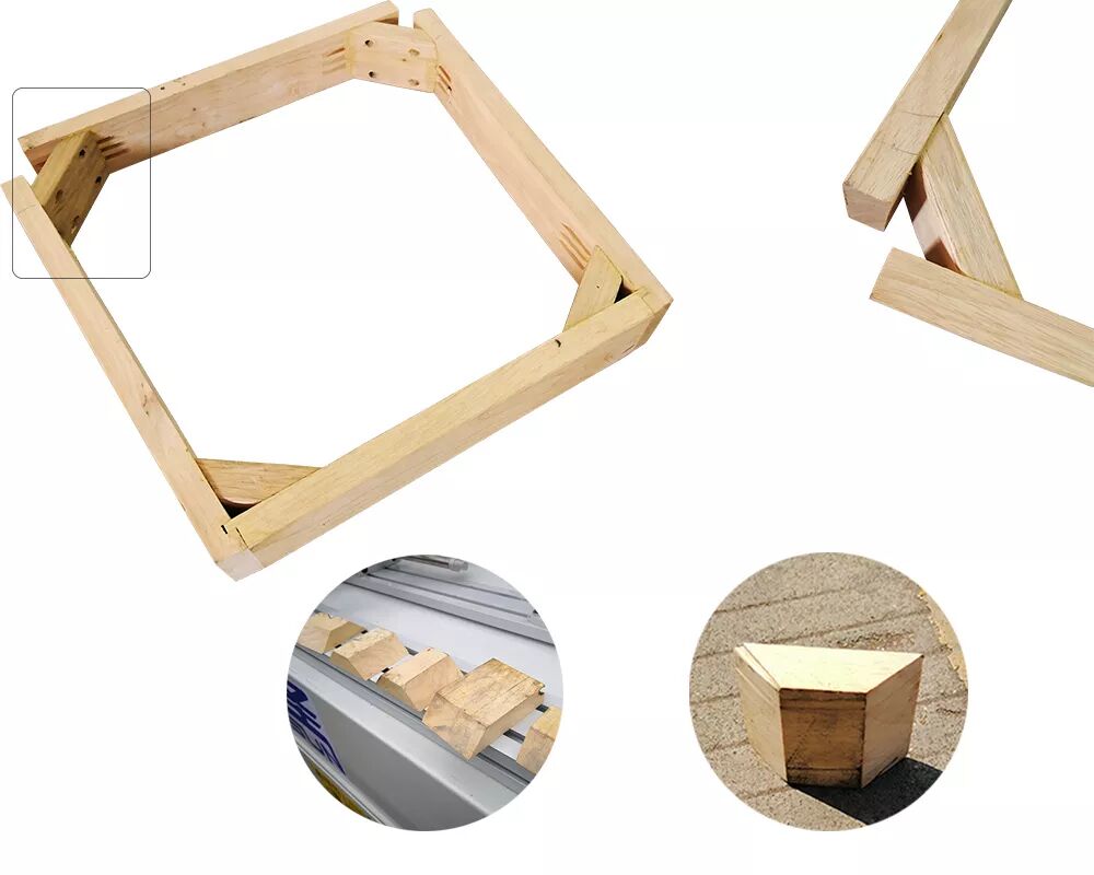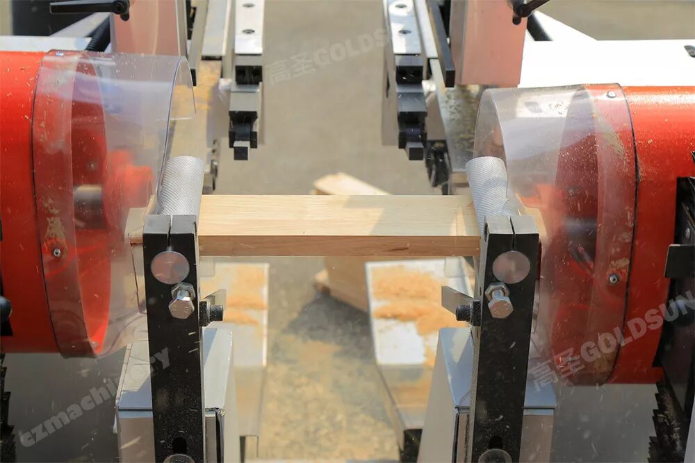 两次先后锯切,完成餐桌椅制造需求的座框部位的三角木的锯切功能。
